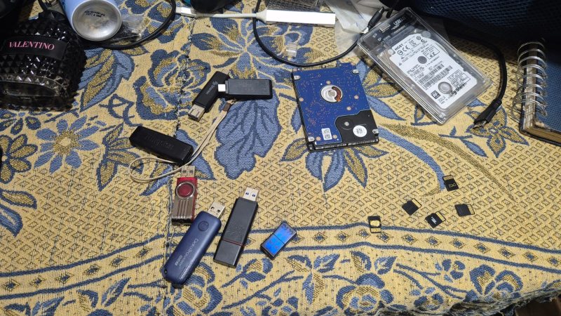 Memorias de varios tipos fueron decomisadas en los allanamientos, estas serán sometidas a revisión. Foto: FGR