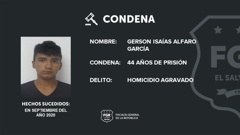 En dicho reporte, se informa de la sentencia de otro de los pandilleros implicados en el asesinato, César Alfredo Domínguez Flores, recibió una pena de 50 años de cárcel.