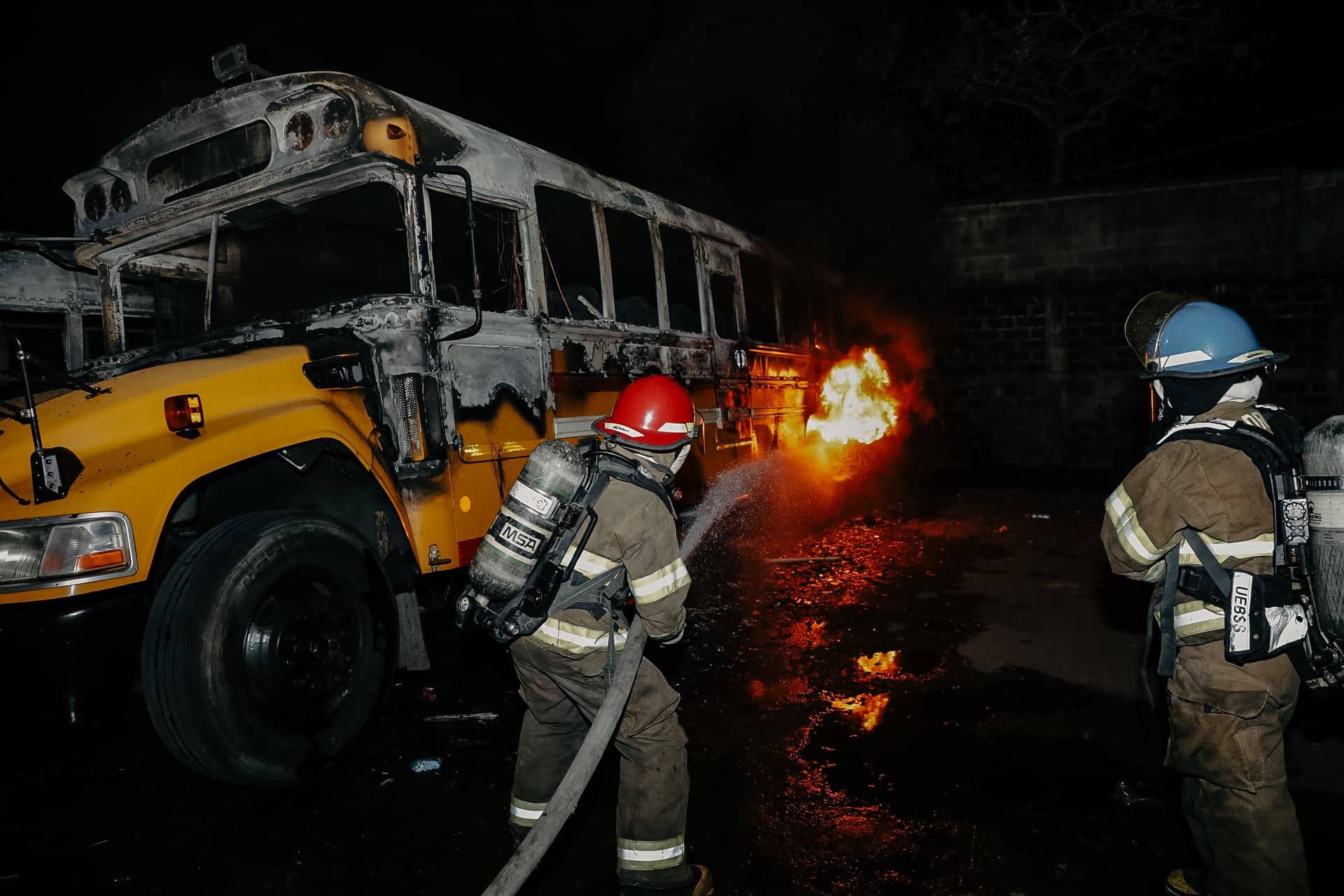 Un incendio se registró en la madrugada de este sábado en el punto de autobuses de la Ruta 14, ubicado en San Martín, San Salvador Este, donde cuatro unidades de transporte colectivo fueron completamente destruidas por las llamas.