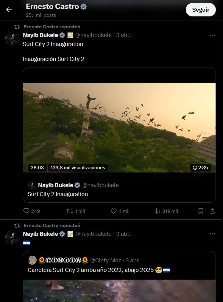 Quien sí tuvo la osadía de escribir para redes sociales fue William Soriano, pero solo para reaccionar a la cadena nacional en la que se inauguró Surf City Dos: “Más de $1,400 millones en inversiones en el Oriente del país. ¡Avanzamos!”.
