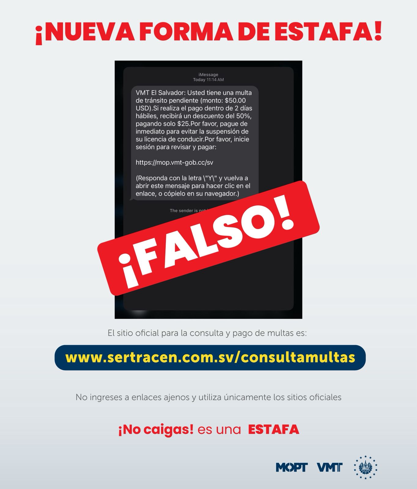 Ante esta situación, el Viceministerio de Transporte (VMT) advierte a la población que no confíe en estos mensajes y recuerda que se trata de intentos de phishing, una forma de estafa digital para que revelen datos personales, como contraseñas, números de tarjeta o información de identidad.