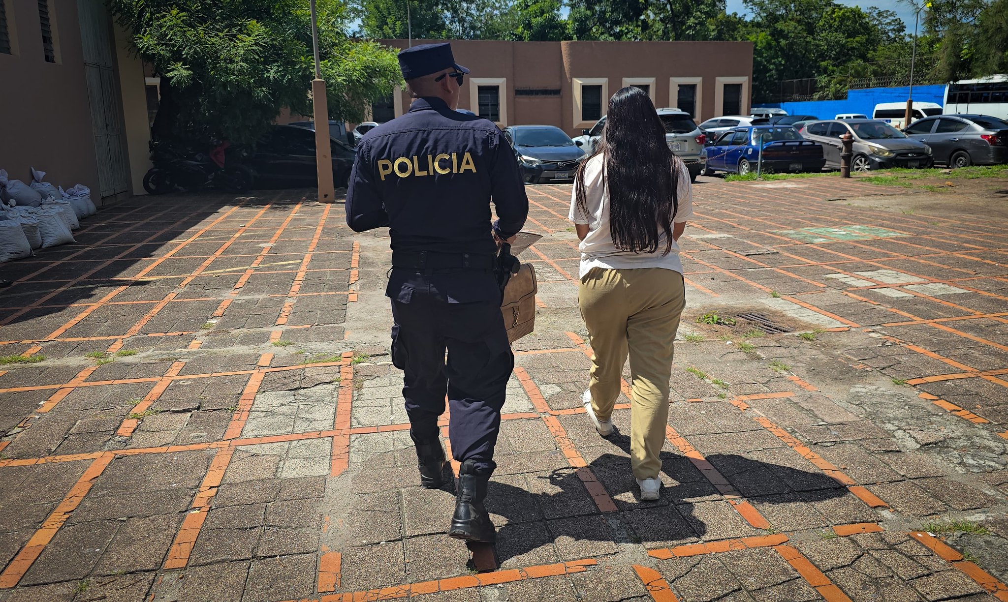 Una joven estudiante de bachillerato siendo escoltada por un policía. Foto / FGR