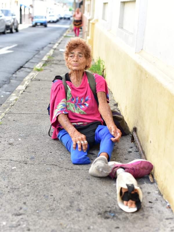 María Juana Medina vive en las aceras del centro de Santa Ana. Tiene 86 años y desde hace más de una década se encuentra en situación de calle. En abril del presente año sufrió una caída que le provocó una herida en el pecho, se le hizo una llaga y esta se llenó de las larvas de la mosca Cochliomyia hominivorax y eso casi la lleva a la muerte, narran parientes y amistades.