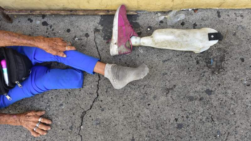 Por las mañanas es usual verla arrastrarse sobre la angosta acera de la 2.ª avenida sur de la localidad. Cada espacio que avanza implica una serie de movimientos: tomar su bastón y su prótesis de pierna para lanzarlos hacia adelante, jalar una abultada mochila mientras desgarra su ropa contra el suelo, empujándose con sus manos y su pierna izquierda. Hace unos 20 años, María se cortó mal una uña de su pie derecho, eso le provocó una pequeña lesión. Para ese tiempo, ella no sabía que padecía diabetes y la pequeña herida obligó a los médicos a realizarle una serie de amputaciones hasta llegar cerca de su rodilla.