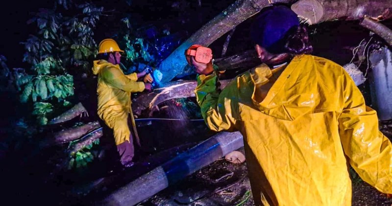 Comandos de Salvamento removió árbol caído en calle entre distritos de Alegría y Santiago de María. Foto: Cortesía