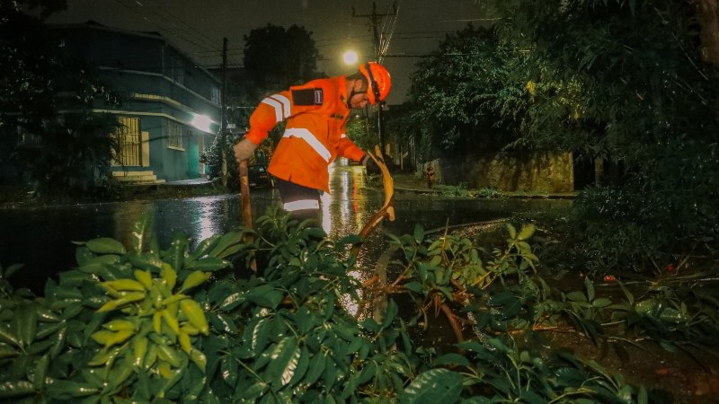 En San Salvador Centro, equipos de Protección Civil removieron árboles en la colonia Montecarmelo, de Cuscatancingo, y en el barrio San Jacinto del distrito capital.