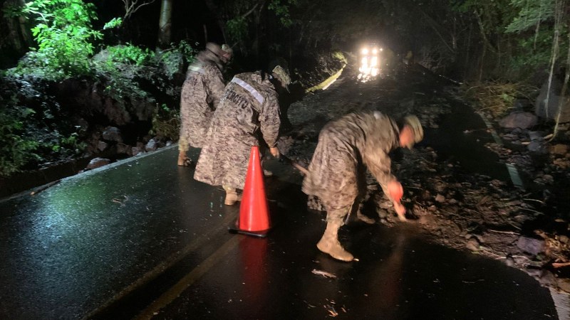 Militares remueven derrumbe en Cabañas. Foto: Cortesía