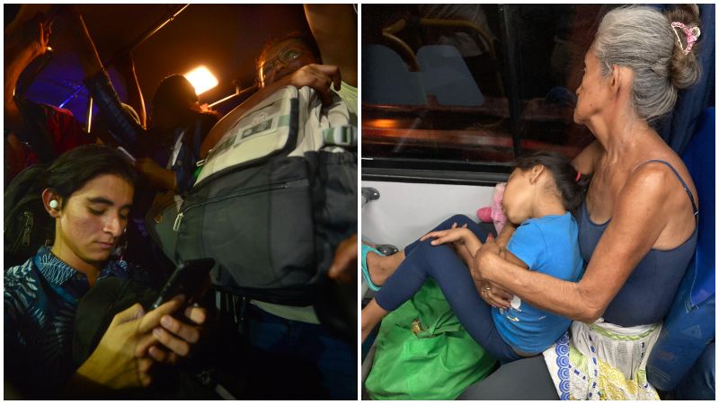 Algunos se quedan dormidos en el bus, a veces alguien ronca. A veces, en medio del hacinamiento, ocurre una discusión por un codazo o un empujón. En otras ocasiones, el silencio reina, como si todos entendieran que pelear no sirve de nada. Solo hay que resistir, mientras el autobús avanza a vuelta de rueda.