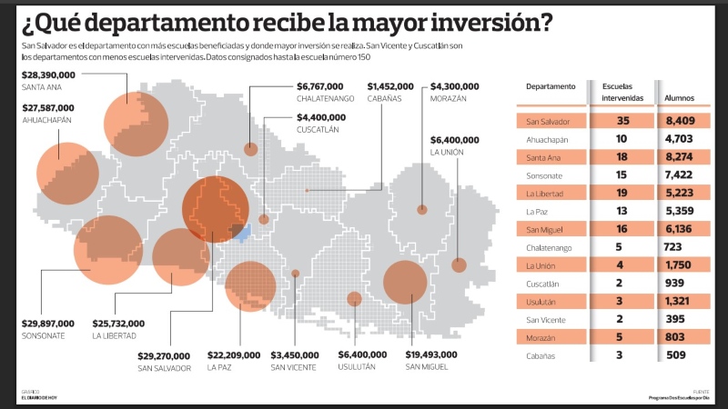 Datos tomados del sitio web de Dos Escuelas por Día hasta la institución número 150. Foto EDH/Cortesía