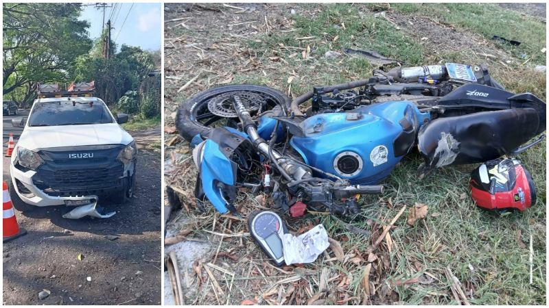 De acuerdo con el informe brindado por Comandos de Salvamento, el percance ocurrió a eso de las 5:00 de la tarde, cuando un pick up placas P 82-AC7 invadió el carril donde iba el joven en su motocicleta placas M348474 y del impacto, perdió el control de la misma, hasta salir catapultado y quedar tendido e inconsciente, en un terreno a la orilla de la vía.