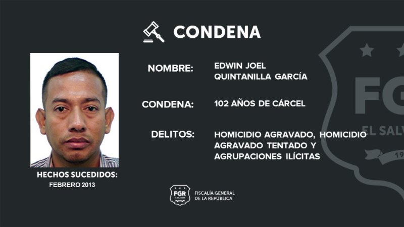 Homicidio agravado, intento de homicidio y agrupaciones ilícitas son los cargos que imputaron a Edwin Joel Quintanilla García (102 años de cárcel), Ezequiel Benjamín Dubón Campos (35 años de cárcel) y Saúl Antonio De León García y Bryan Alfonso Córdova Matal (ambos 25 años de cárcel).