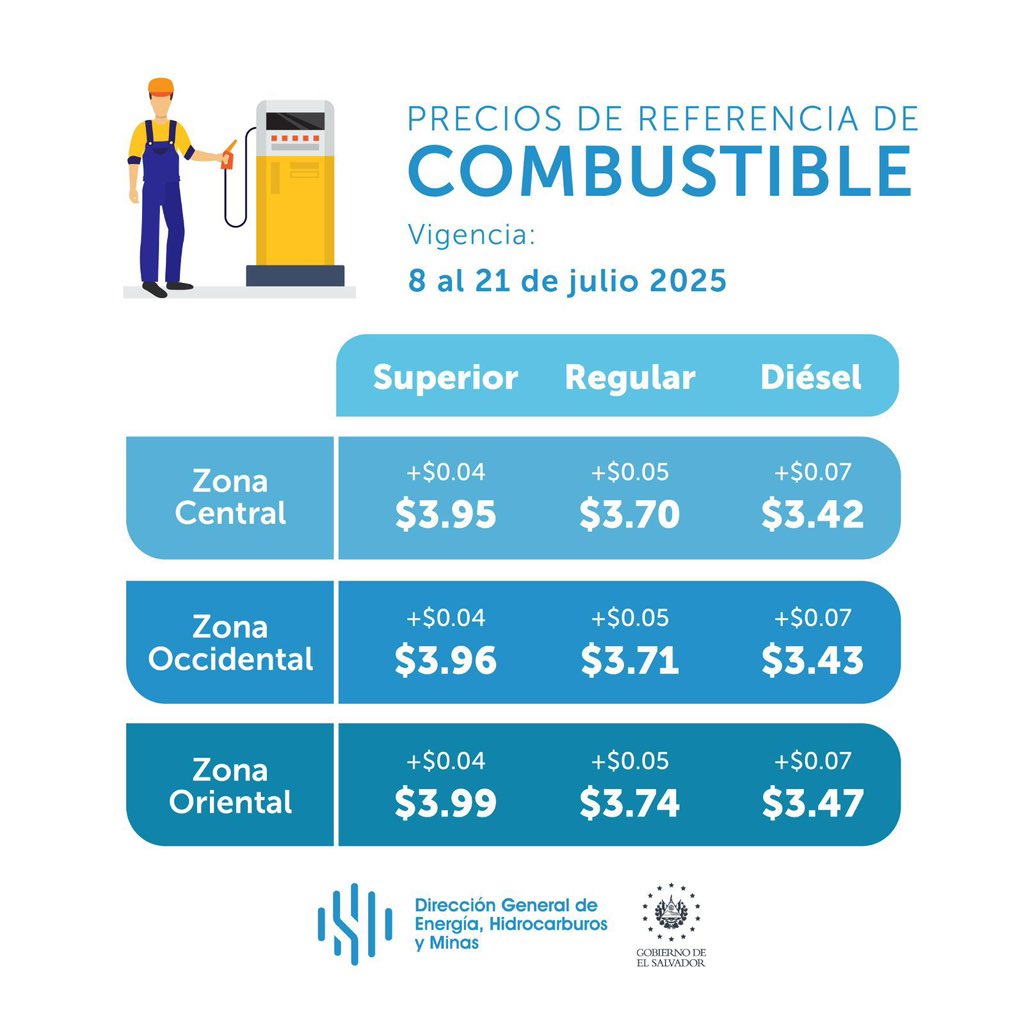 La gasolina superior sube $0.04 en las tres zonas del país. Con este ajuste, los precios por galón quedan de la siguiente manera: Zona central: $3.95, zona occidental: $3.96 y zona oriental: $3.99