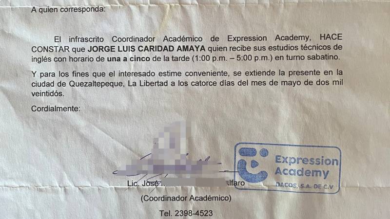 El 10 de enero de 2022 Jorge cumplió 18 años y el regalo que su madre le entregó fueron 40 dólares para pagar la matrícula de un curso de Inglés que el joven deseaba realizar en una academia, localizada en el centro de Quezaltepeque.