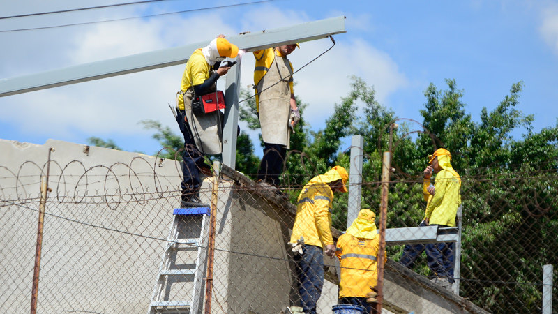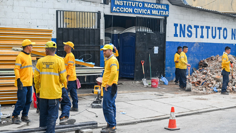 Este periódico habló con uno de los ingenieros asignados en el Instituto Nacional "Acción Cívica Militar", quien confirmó que es Constructora El Salvador la que está ejecutando el proyecto. "Acá solo habemos dos ingenieros y todos los demás que trabajan son reos", aseguró, añadiendo que llevaban 21 días trabajando en la reconstrucción de ese instituto.