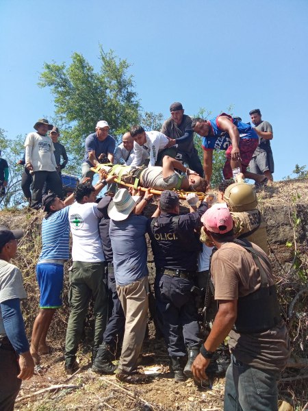El hombre fue rescatado de las orillas de la quebrada con ayuda de socorristas de Cruz Verde Salvadoreña de la seccional Puerto Parada, un gran número de residentes de la zona y agentes policiales.