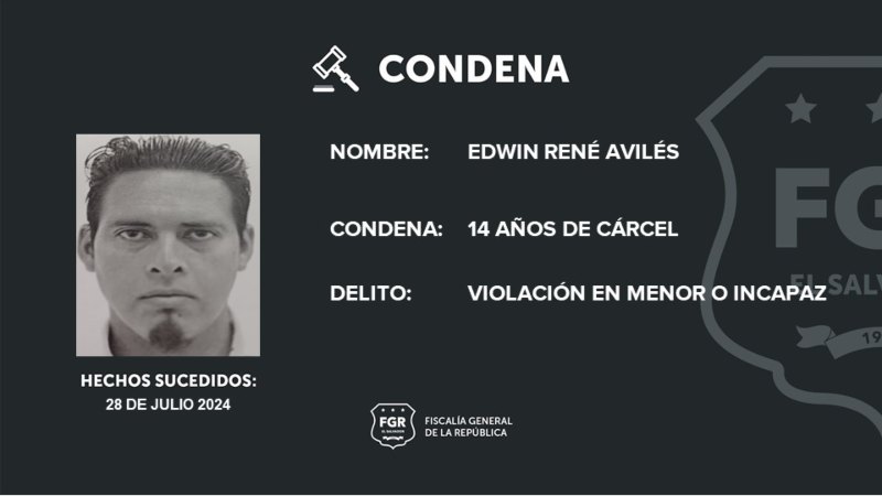Edwin René Avilés ha sido condenado por haber abusado sexualmente de una adolescente en julio de 2024, en Colón, La Libertad Oeste.