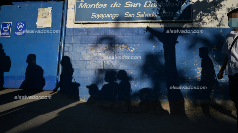 Varias personas pasan frente a una escuela en Montes de San Bartolo, Soyapango. Foto EDH