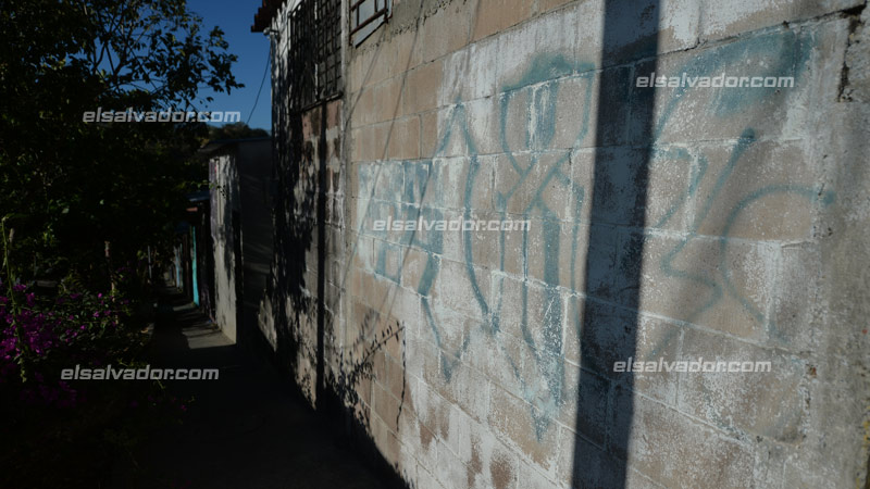 En los pasajes del reparto Las Campaneras todavía se logran ver los grafitis de la pandilla 18. Foto EDH