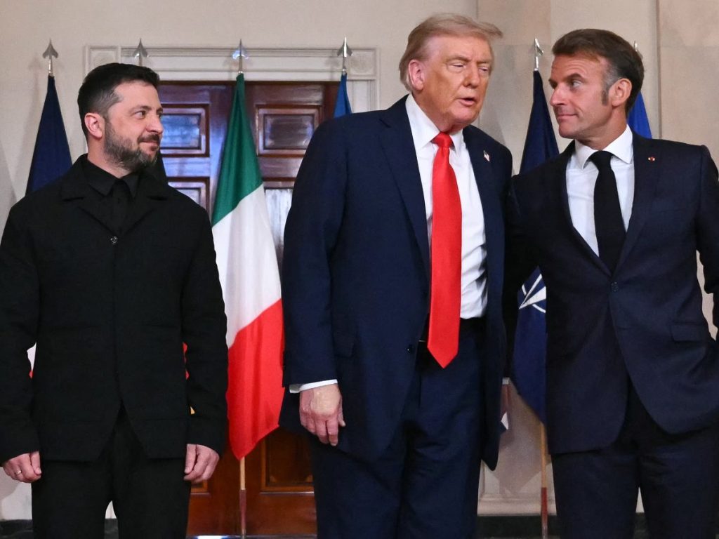 Trump (C.) ha sostenido reuniones con los presidentes de Ucrania, Volodymyr Zelensky (Izq.), y de Francia, Emmanuel Macron. / Foto AFP