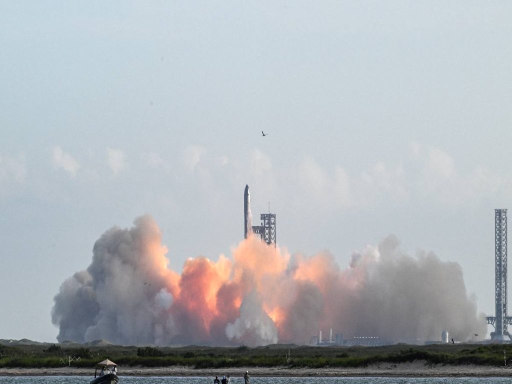 Super Heavy se separó de Starship cerca de siete minutos después del despegue y cayó en las aguas del Golfo de México, al sur de Estados Unidos, como se esperaba, pero no está claro si de una pieza.