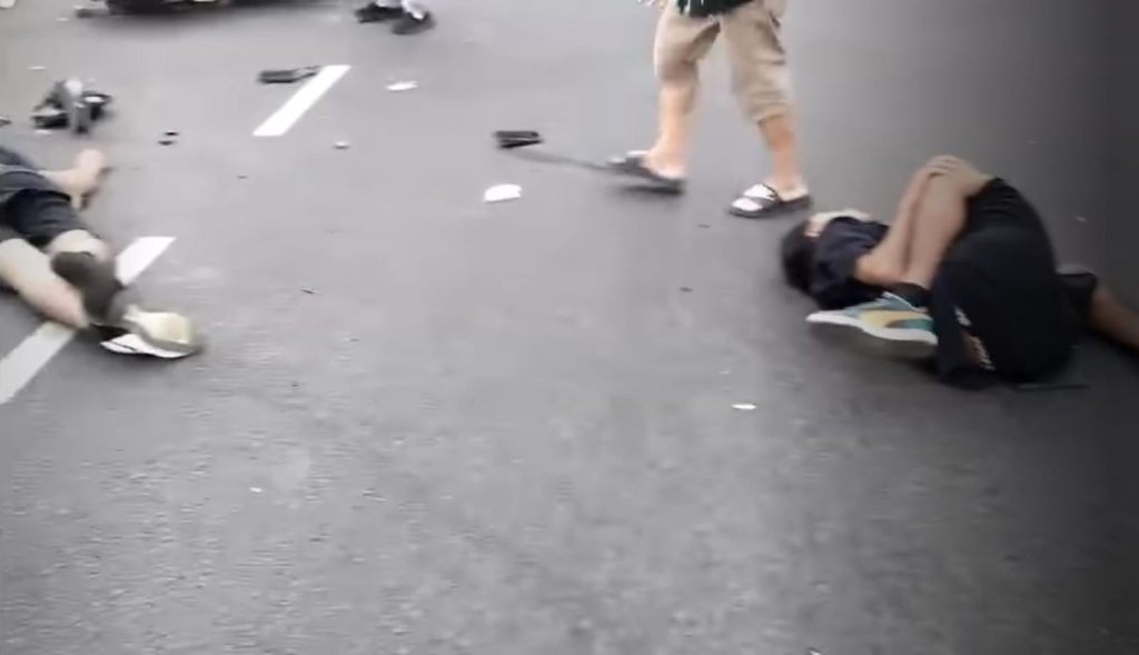 Motociclistas quedaron tendidos sobre la carretera tras ser golpeados por un vehículo. FOTO EDH/CORTESÍA.