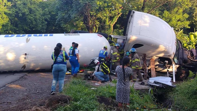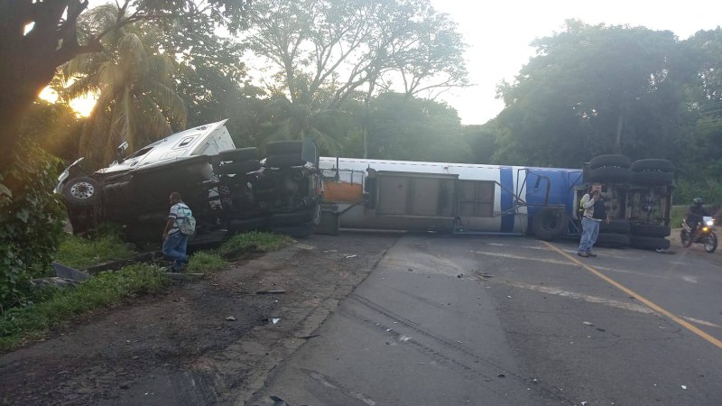 Protección Civil precisó que el accidente se produjo en el kilómetro 122 de la Panamericana, personal de esa institución, Cuerpo de Bomberos, Cruz Verde Salvadoreña y el Sistema de Emergencias Médicas trabajaban en el rescate de una víctima atrapada.