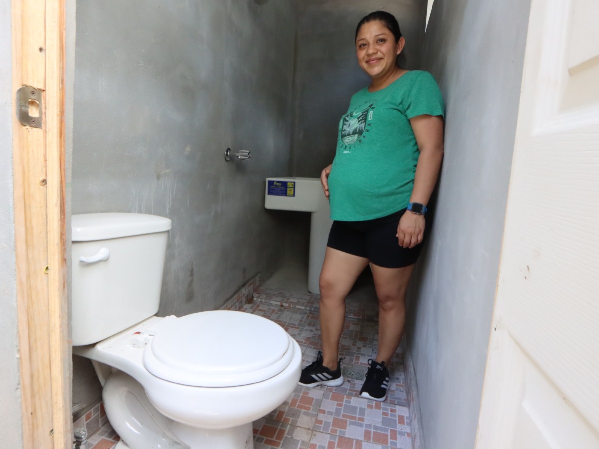 Claudia Hernández es parte de la comunidad Cristo Redentor, y en su vivienda viven 4 personas que ahora tienen un baño propio, que aunque suene como algo esencial como en cualquier hogar, las familias de esta zona de la Colonia Escalón no lo tenían.