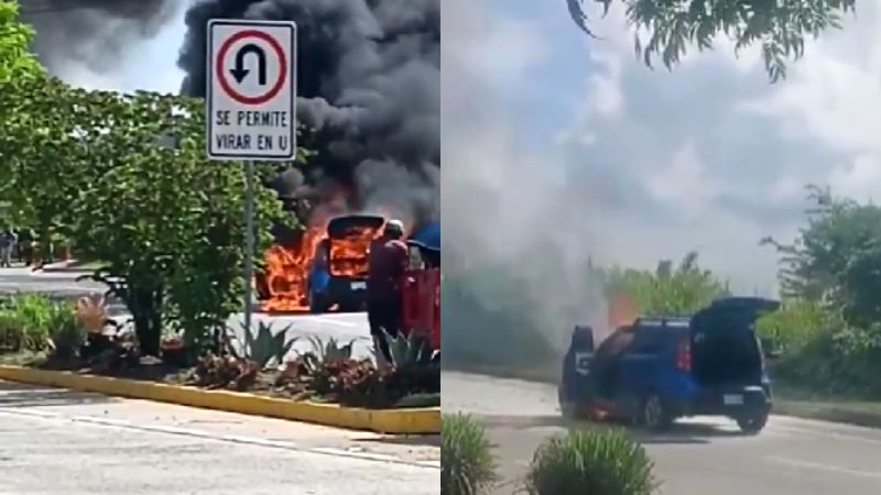 Al lugar se hicieron presentes personal del Cuerpo de Bomberos, quienes realizaron maniobras para controlar el siniestro en el vehículo.