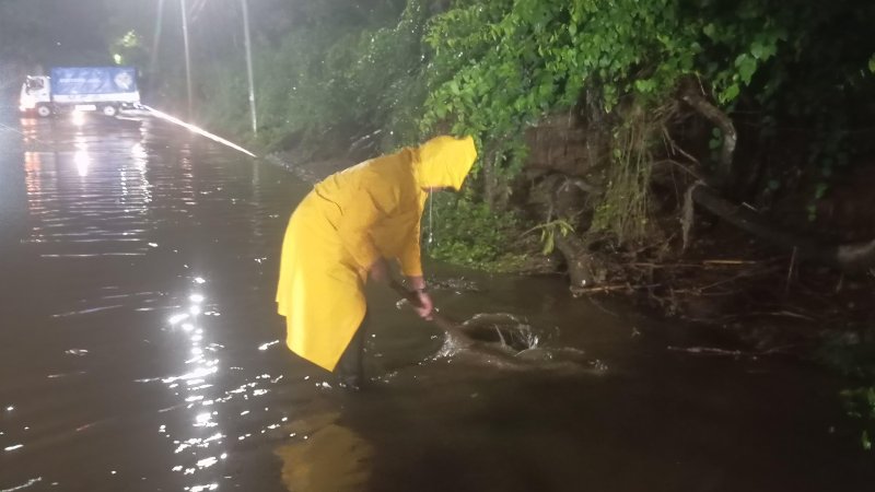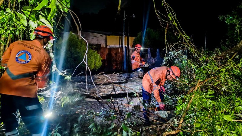 Protección Civil informó que por su parte que sus equipos removieron árboles caídos en la calle María Auxiliadora y el bulevar Los 44, en la ciudad de Santa Ana.