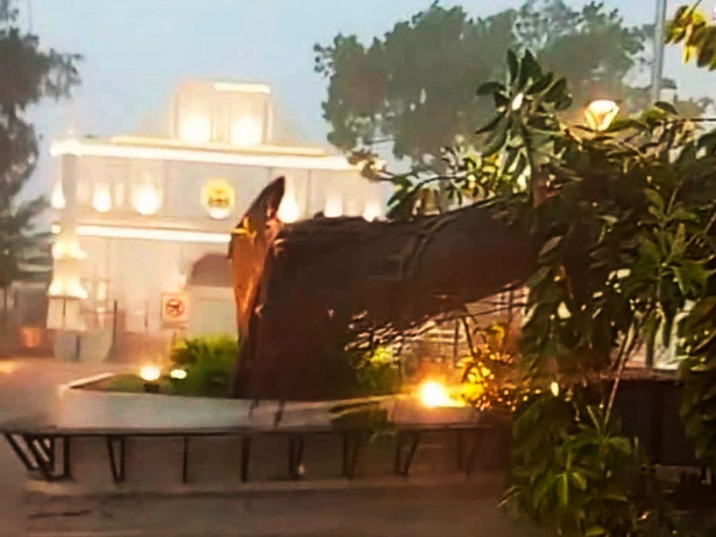 Árboles caídos tras las lluvias de la tarde del miércoles obstruyeron calles y generaron emergencias en distintos puntos del país. En la imagen, árbol caído en la plaza central de San Vicente. /Cortesía.