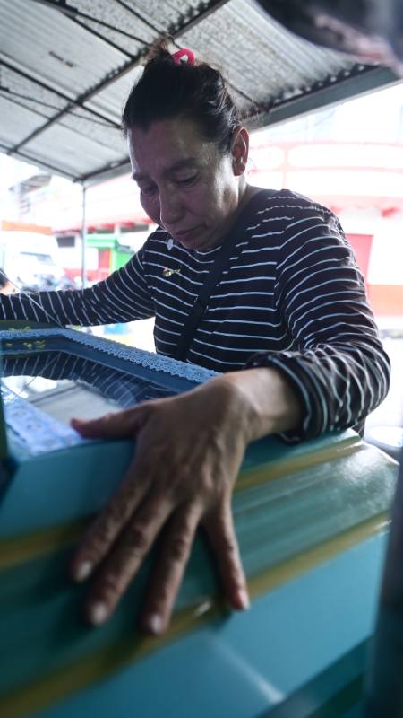 Graciela Mejía llora sobre el ataúd de su hijo, Bryan Alexander Rivera Mejia, quien murió en mayo de este año; su cuerpo presentaba heridas en el cráneo, afirmó. Foto EDH/ Archivo