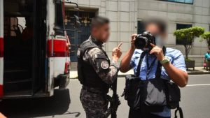 Custodios de Centros Penales y un miembro de la DOM restringieron el trabajo periodístico en la vía pública mientras se tomaba fotografías de la intervención del Hospital Rosales. Foto EDH