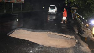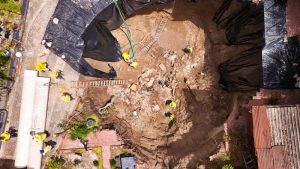 Trabajadores dentro del hundimiento. Foto / Cortesía MOPT