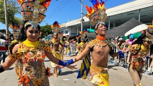 Una de las reinas del desfile recorre las principales calles de San Miguel en una carroza adornada con flores y luces, destacando el color y la elegancia del carnaval.