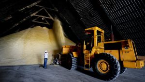 Operarios en una planta textil salvadoreña preparan productos para exportación, uno de los principales rubros del comercio exterior del país.