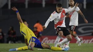 Juan Quintero (Der.) celebra junto a su compañero Johan Mojica, de la selección Colombia. / AFP