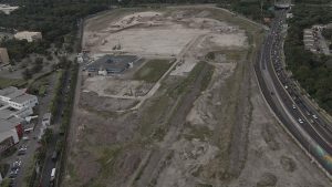 Vista del avance en la zona donde se edifica el nuevo Estadio Nacional, en los terrenos de la antigua Escuela Militar. Fotografía/ X Yamil Bukele