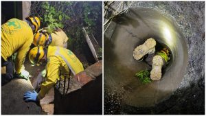 Momento en que la menor fue auxiliada por los socorristas. Foto / Cruz Verde
