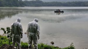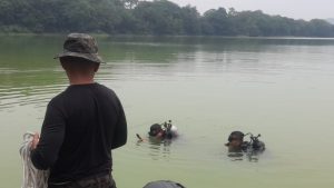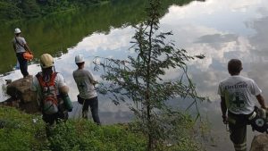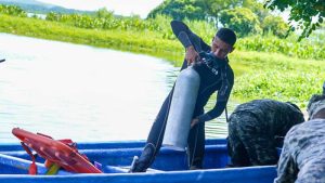 Socorristas en la búsqueda del menor que fue arrastrado por una corriente en la laguna. Foto / Cortesía Cruz Roja
