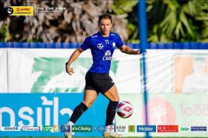 Mark Lester Blanco celebra gol con North Bangkok University en Tailandia