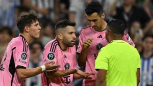 h-Fútbol 10-04-2024 El árbitro salvadoreño Iván Barton expulsó a Jordi Alba en su reencuentro en México