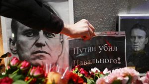 una mujer deja flores como parte del duelo nacional tras masacre en Rusia