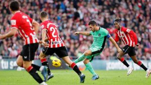 Lamine Yamal (izq.) celebra con Robert Lewandowski la victoria del Barcelona ante el Real Sociedad. Foto AFP