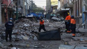 Vendedores terminan de desmontar sus puestos de comercios informales. Foto EDH / Cortesía Alcaldía de San Salvador.
