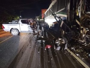 Así quedó la camioneta en que viajaba el joven de 27 años. Foto / Cortesía PNC