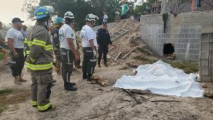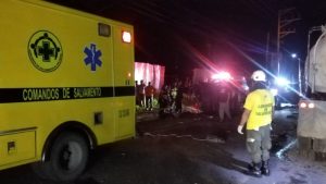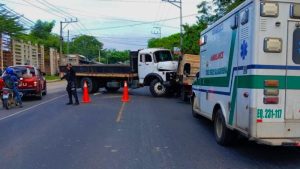 Policía durante la inspección de la escena de accidente en la Troncal del Norte. Foto: PNC