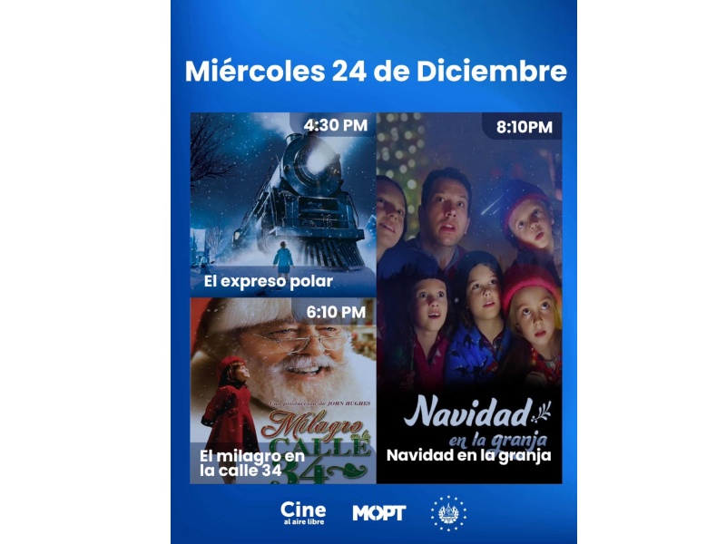 Para quienes buscan una alternativa distinta para pasar el 24 de diciembre en El Salvador, el cine al aire libre se presenta como una opción accesible dentro de la ciudad. Este fin de semana, familias salvadoreñas podrán disfrutar de una cartelera especial de cine navideño en el Parque El Bicentenario, como parte de una iniciativa impulsada por el Ministerio de Obras Públicas (MOP).