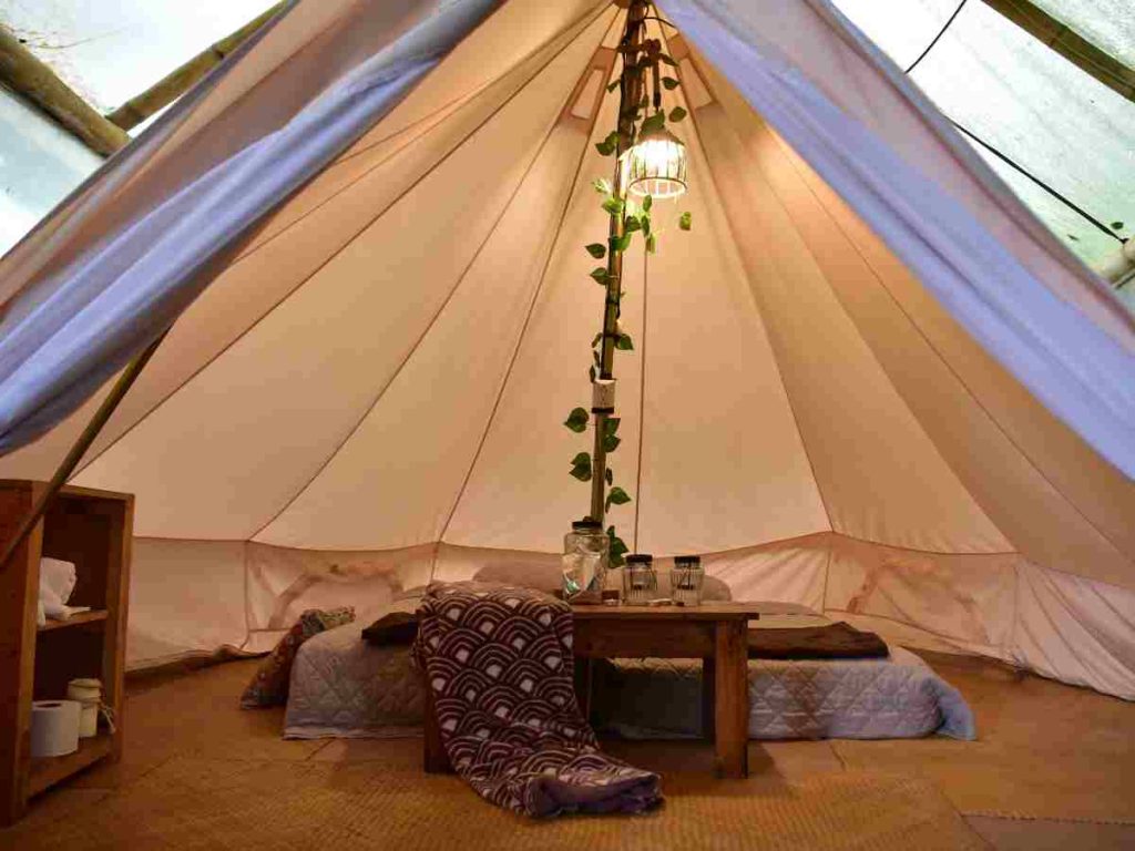 La zona de glamping en Buena Vista Gardens incluye tienda grande techada, cama y acceso a duchas, ideal para una noche cómoda en medio de la naturaleza. / Foto elsalvador.com