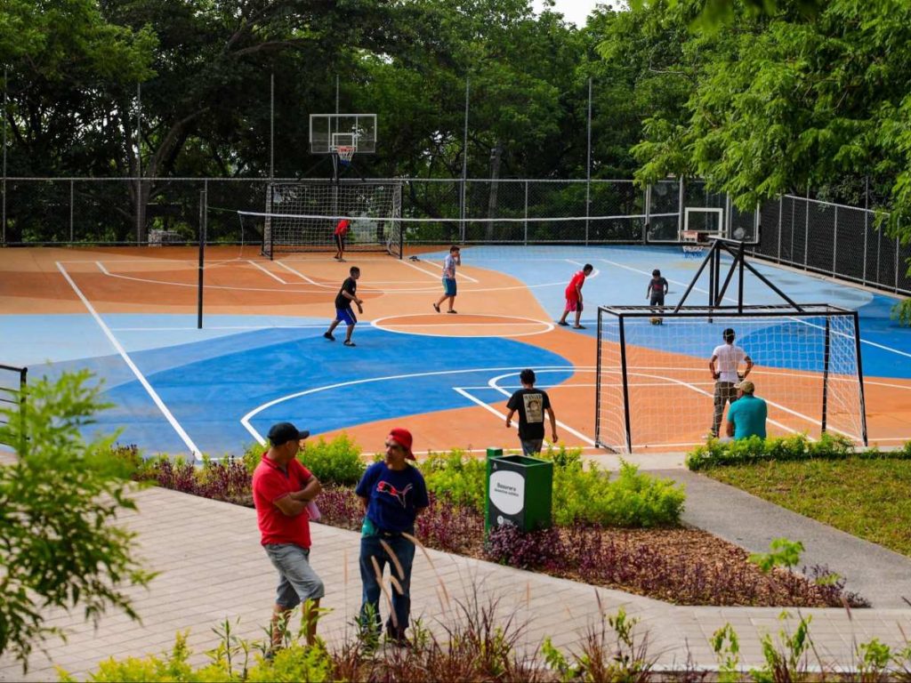 Si sos de los que siempre buscan movimiento y ejercicio, o vas con un pequeño con mucha energía, el parque cuenta con una cancha de usos múltiples, perfecta para practicar cualquier deporte que te encante, como fútbol o baloncesto. Para los más pequeños, hay una zona de juegos infantiles equipada con resbaladeros, columpios y estructuras seguras donde los niños pueden divertirse por horas.