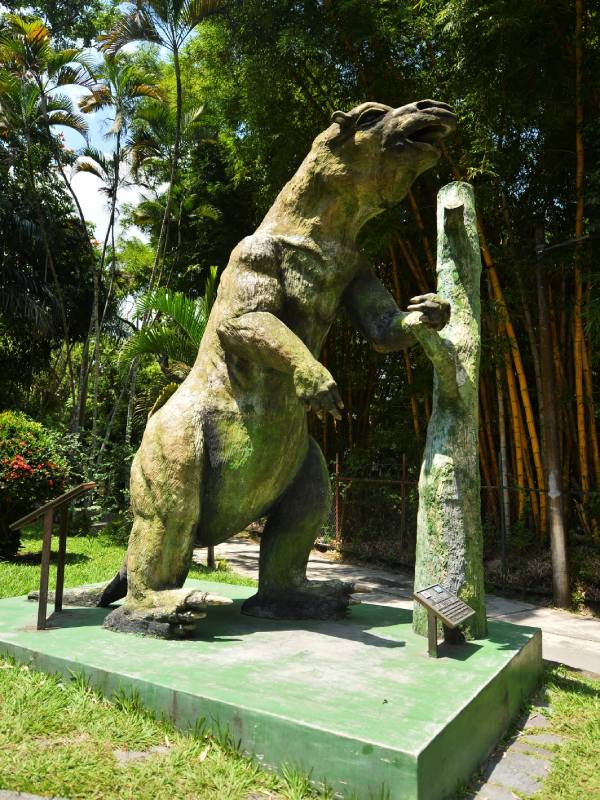 En los jardines del parque también sobresalen dos esculturas a escala real de un toxodonte y un perezoso gigante, lo que convierte al sitio en una especie de parque temático prehistórico al aire libre.